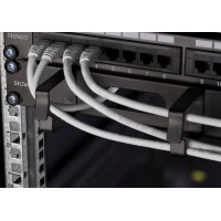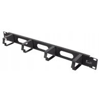 Umożliwia łatwe zarządzanie kablami w 19-calowych szafach serwerowych. Szczotka pośrodku chroni złącza przed kurzem.