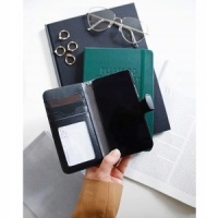 Magnetyczne zapięcie z boku zapewnia wąski profil dzięki czemu smartfon bez problemu mieści się w kieszeni jeansów lub kurtki. Stylowo wycięte miejsca na karty zwiększają funkcjonalność portfela podkreślając zarazem jego wyjątkowy styl i design.
