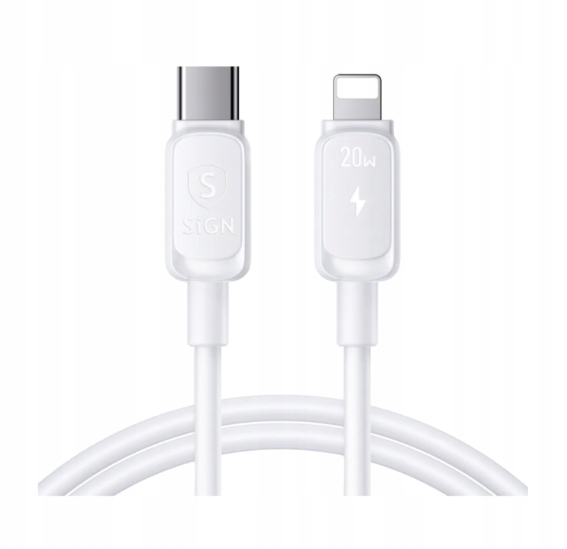 Wybierz kabel SiGN USB-C – Lightning. Może zasilać urządzenia mobilne mocą do 20W, dzięki czemu z łatwością naładuje Twój smartfon lub tablet. Kabel SiGN wyróżnia się spośród innych kabli dostępnych na rynku niezwykłą wytrzymałością. Dzięki silikonowemu oplotowi na długo zachowa swój idealny kształt.
