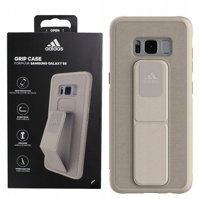 Zaprojektowane przez markę Adidas etui Grip Case to funkcjonalne i wygodne akcesorium do telefonu Samsung Galaxy S8. Pokrowiec posiada wbudowaną opaskę na rękę, która umożliwia wygodne trzymanie telefonu w dłoni i zapobiega przypadkowemu wyślizgnięciu się telefonu. Oprócz tego Grip Case posiada również funkcje podstawki, dzięki której oglądanie filmów będzie naprawdę wygodne! Nowoczesny design z charakterystycznym logo adidas sprawia, że pokrowiec dobrze prezentuje się w każdej sytuacji.