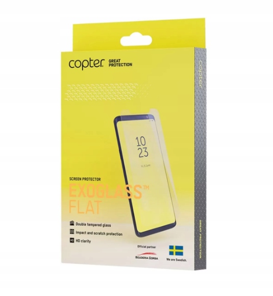 Copter Exoglass chroni ekran dotykowy przed wszystkimi drobnymi wpadkami codziennego życia i zapewnia, że urządzenie zawsze wygląda jak nowe, zapobiegając pojawianiu się zarysowań.